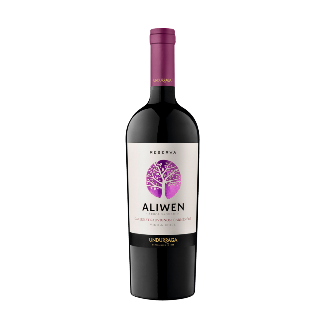 Aliwen Cabernet Sauvignon–Carmenere Reserva 750 ml es un vino tinto chileno de estilo reserva, que combina estructura y suavidad, con un perfil frutal y especiado característico del Valle Central.
