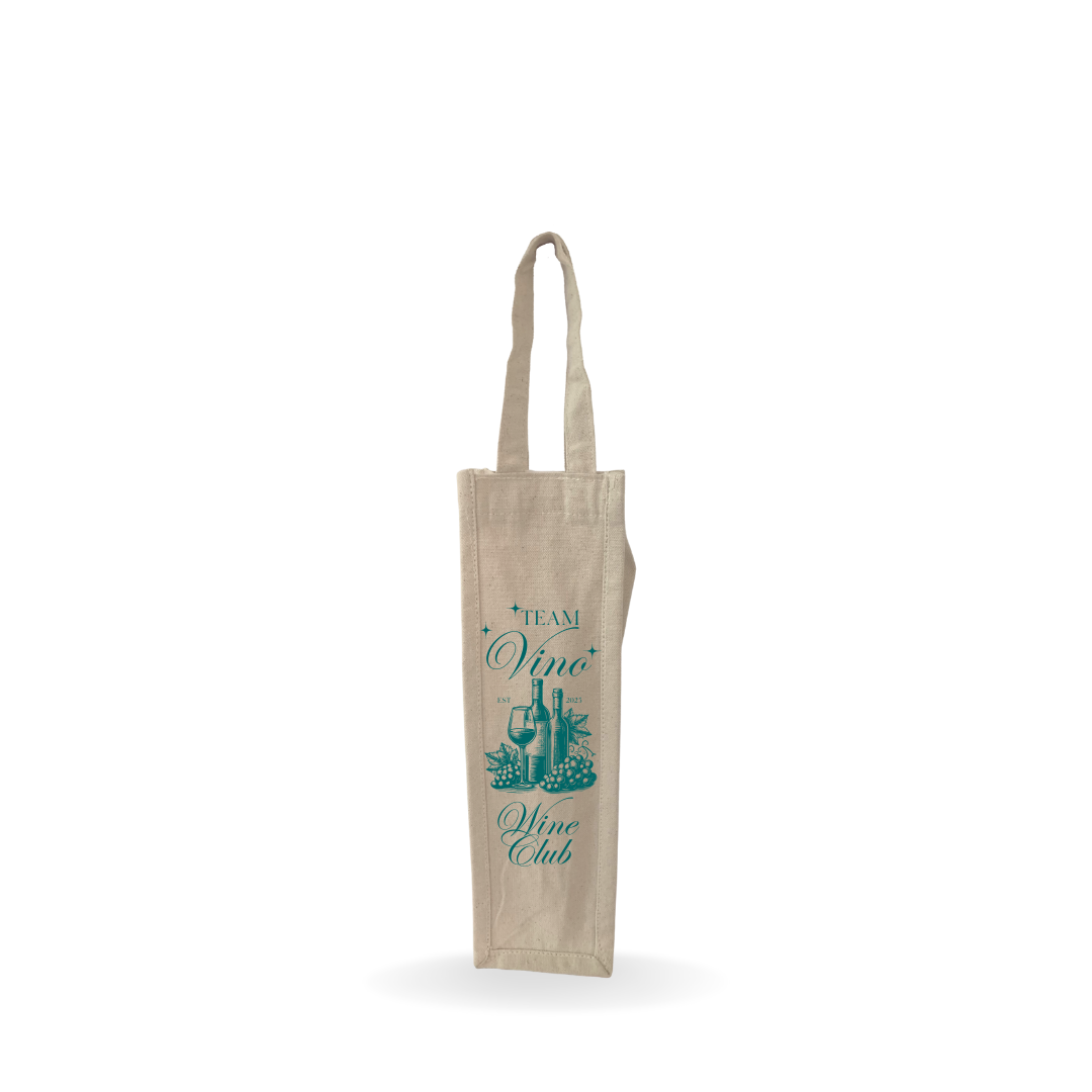 Bolsa de algodón de 10 onzas (283gr), 100% biodegradables. Asa de cinta de algodón crudo de 28 cm de largo y 2,5 cm de ancho. Para botellas de vino.
