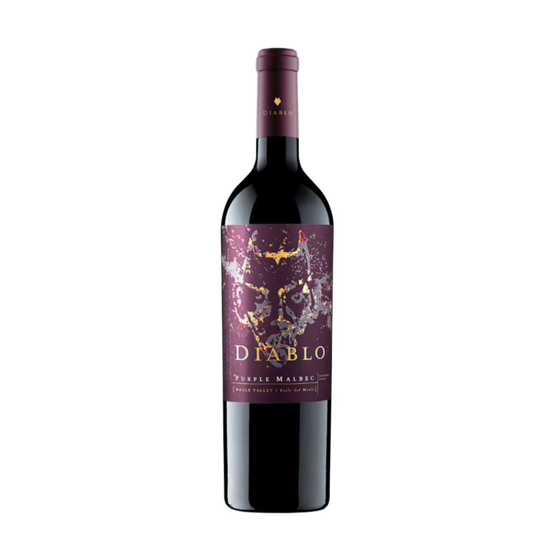 El Diablo Purple Malbec es un vino tinto Malbec chileno de estilo moderno, con color púrpura intenso y aromas a frutas negras maduras como ciruela y mora, además de notas suaves florales y especiadas.