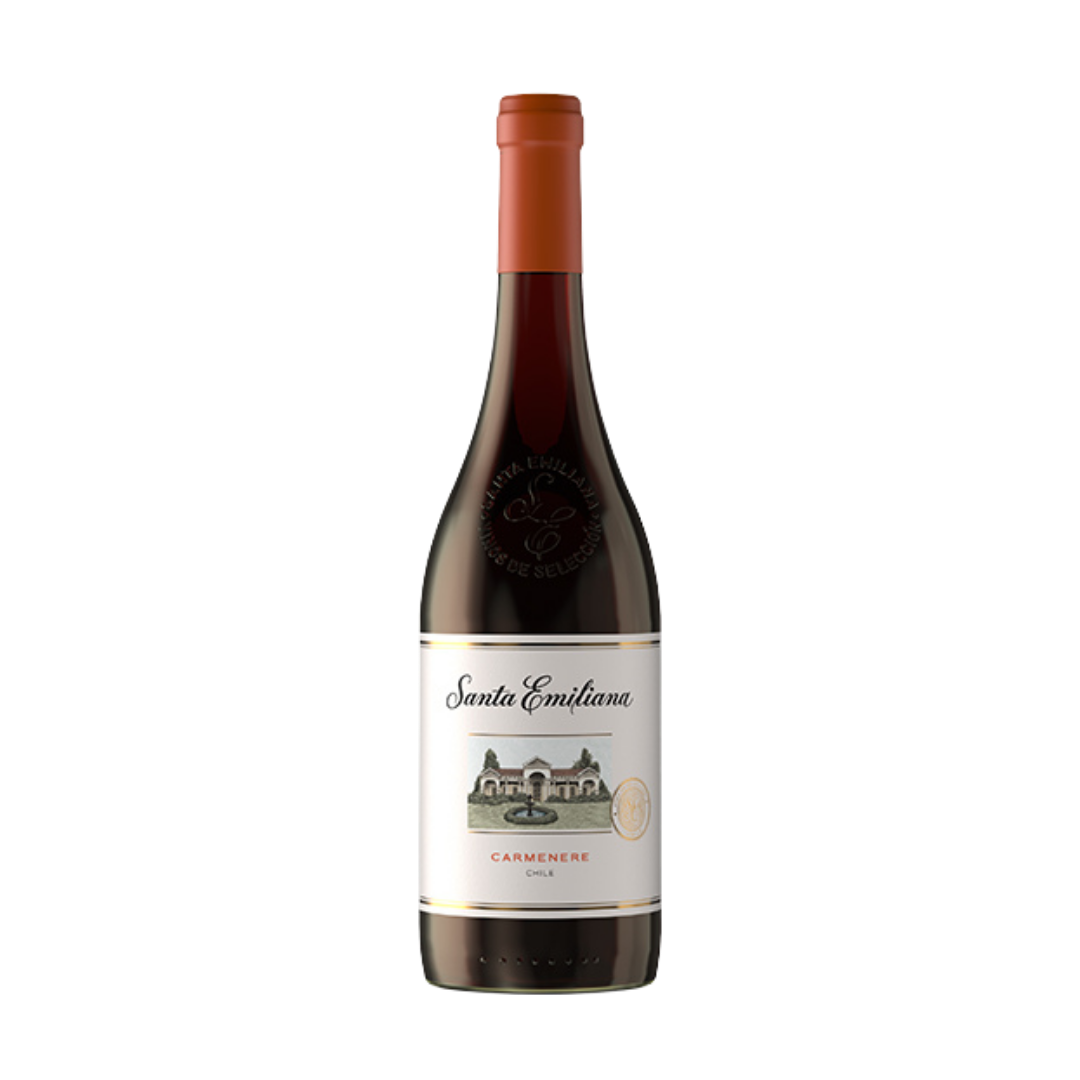 El vino Santa Emiliana Carmenere es un tinto chileno del Valle Central, de estilo suave y fácil de beber. Presenta un color rojo violáceo intenso, con aromas a frutas rojas maduras como ciruela y grosella, acompañadas de notas herbáceas y especiadas. En boca es de cuerpo medio, con taninos sedosos y aterciopelados, y un final equilibrado y agradable.